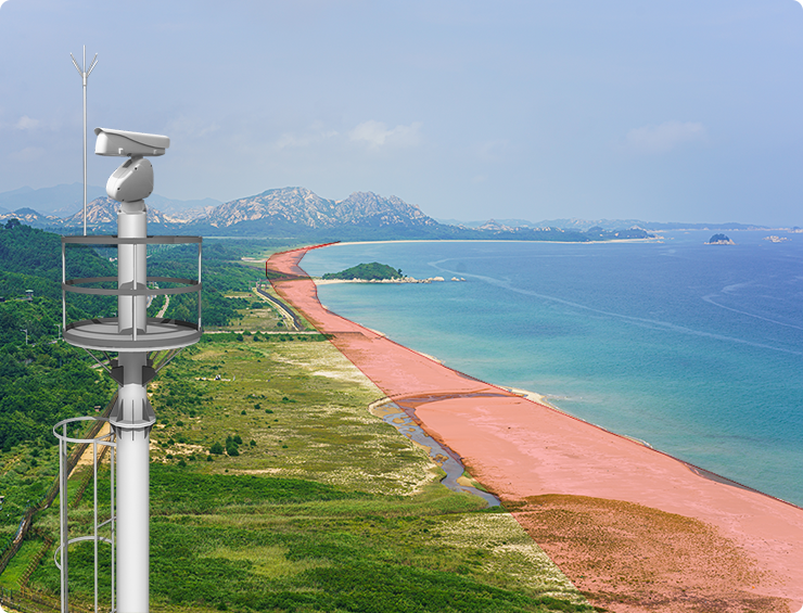 The intelligent coastal boundary surveillance systemmonitors and tracks targets through RADAR linkage, intelligently realizing maritime boundaries through application of ultra-high-magnification general-type cameras, thermal imaging cameras, virtual lines within surveillance areas, and RoI.