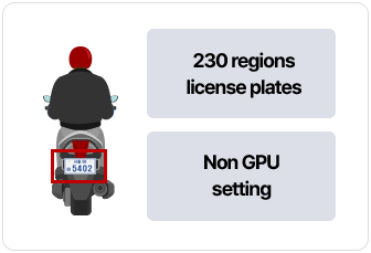 - · Recognition of various motorcycle license plates and judgment of presence of helmet