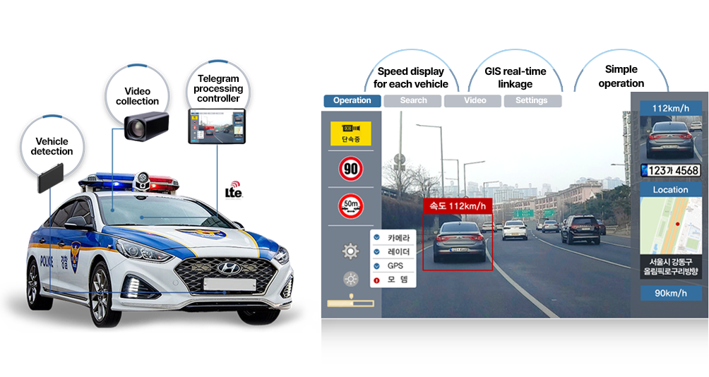 The mounted LPR solution is a solution that detects and enforces speed violations that exceed the speed limit by measuring the speed of vehicles on the road using cameras and radars installed inside the vehicle.