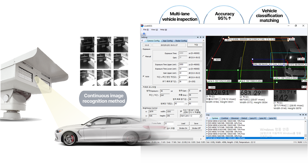 - · Accurate vehicle type classification through vehicle registration inquiry using the license plate number of the passing vehicle